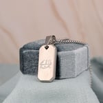 This necklace is sturdy and modern, made of Stainless Steel; the plate has the Greatest Name engraved on one side and the ringstone symbol on the other. It is hanging on a long and sturdy chain and it is perfect for layering or wearing on its own.