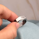 These rings are beautifully manufactured with stainless steel and given a silver brushed finish. The middle has a matte effect and it spins; therefore, it can also be used as a tool to wind down and practice mindfulness in our daily lives. The Ringstone symbol is engraved on one if the flat surfaces with laser.